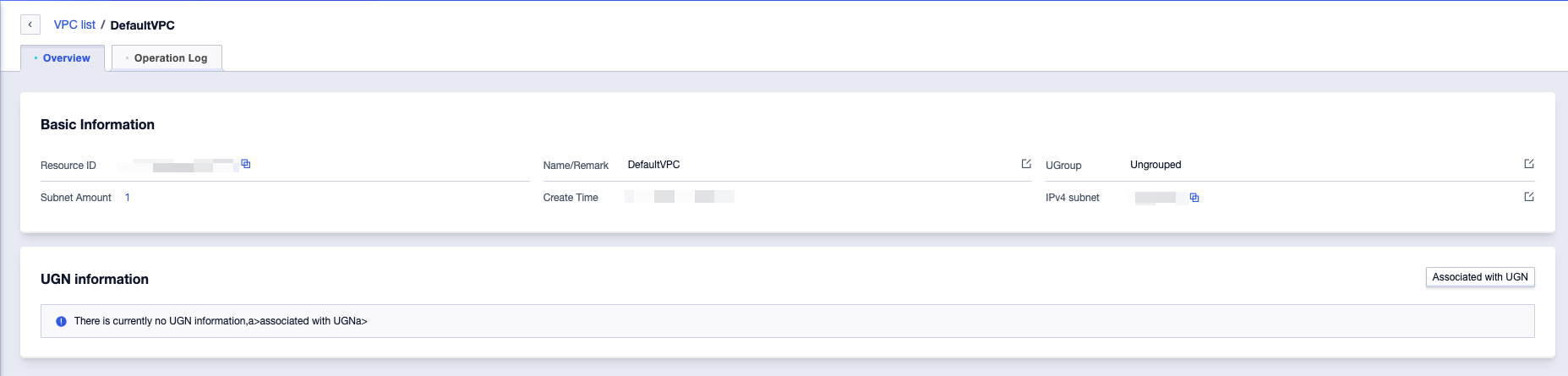 2. In the UGN Information section on the VPC details page, select Associate with UGN.