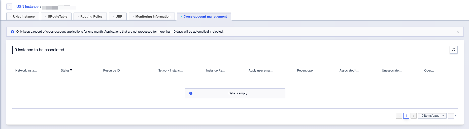 1. After logging in to the primary account, the recipient will see a red indicator on the UGN instance with cross-account requests. Click to enter the UGN instance details page.